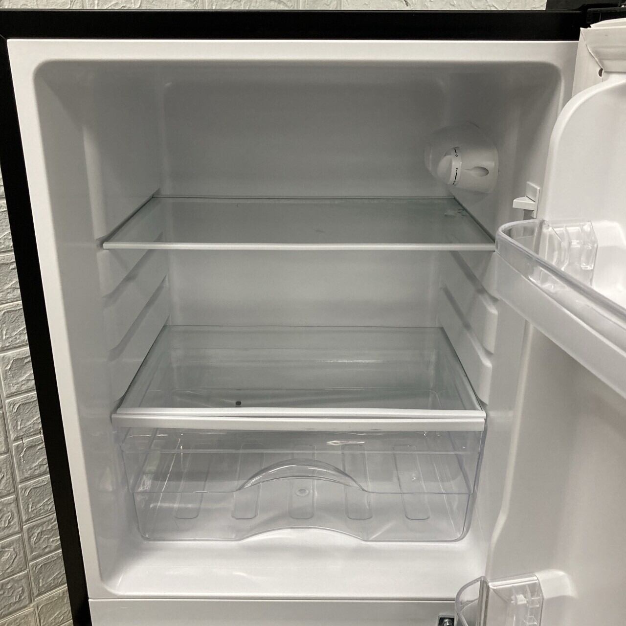 状態:一部染みと右側側面に凹みがありますが、冷蔵庫内は非常に綺麗な状態です。